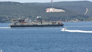 Enerji ve Tabii Kaynaklar Bakanı Fatih Dönmez'in bir süre önce açıkladığı, Karadeniz gazını karaya taşıyacak hat için deniz tabanına boruları yerleştirecek 140 metre uzunluğundaki 'Castoro 10' isimli gemi, Filyos Doğal Gaz İşleme Tesisi'ne gitmek üzere Çanakkale Boğazı'ndan geçti.