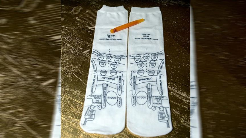 "Çorabın altı adeta vücut haritası gibi." ifadesini kullanan Karadağ, "Bu noktalar, hangi bölgeye masaj yapıldığında hangi rahatsızlığa faydası olacağını gösteriyor. Ürünün yanında masaj için kullanılan bir de kalem gönderiyoruz. Bu kalemle ayakta gösterilen bölgeye masaj yapılıyor." diye konuştu.