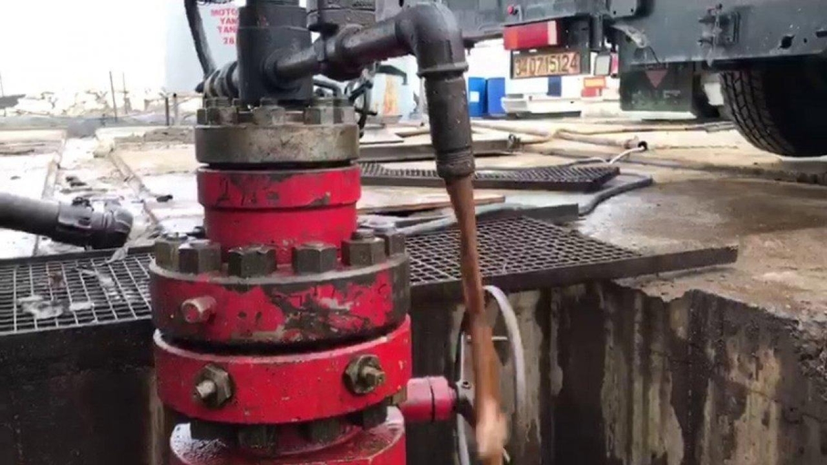 'Çukurova 1' isimli araştırma sahasından çıkan petrolün vanalardan akışı da görüntülendi.