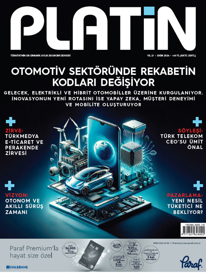 Her ay ekonomi ve iş dünyasının nabzını tutan Platin, Ekim sayısında okurlarını dönüşen otomotiv dünyasının merkezine davet ediyor. Elektrikli ve hibrit araçlardan otonom sürüş teknolojilerine, yapay zekâ destekli üretim süreçlerinden yeni tüketici davranışlarına kadar geniş bir perspektif sunan bu sayıda; mobilite, dijitalleşme ve sürdürülebilirlik ekseninde şekillenen bir sektörün nabzı tutuluyor.
