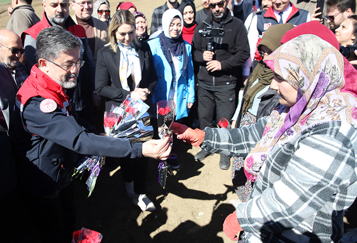 Kadınların 8 Mart Dünya Kadınlar Günü'nü kutlayan Yumaklı, çiçek takdim etti.
