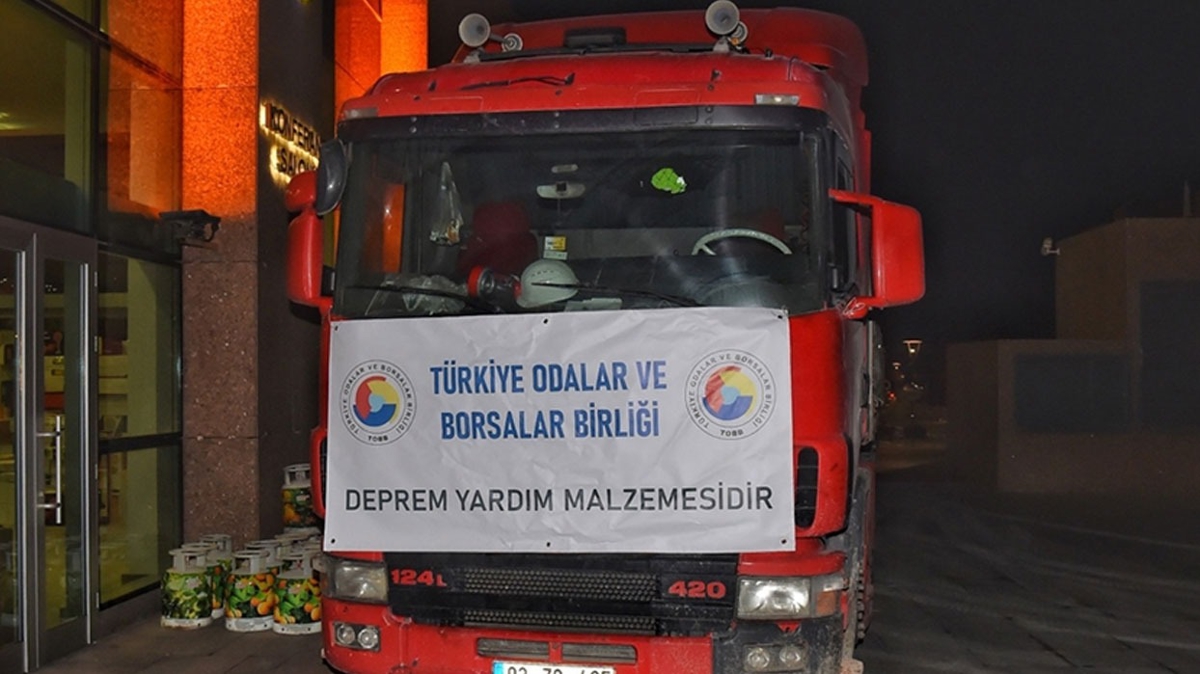 TOBB'dan yapılan açıklamaya göre, AFAD koordinasyonunda yürütülen kampanya kapsamında, 365 oda ve borsa ile firmalar tarafından yapılan ayni yardımlar ve iş makineleri tırlarla deprem bölgesine sevk edildi.