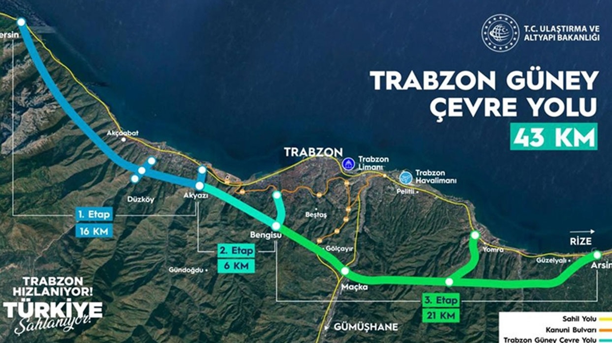 Ulaştırma ve Altyapı Bakanı Adil Karaismailoğlu, Akçaabat'tan Arsin'e kadar 43 kilometrelik Güney Çevre Yolu'na ilişkin yazılı açıklama yaptı.