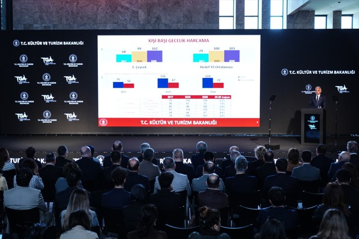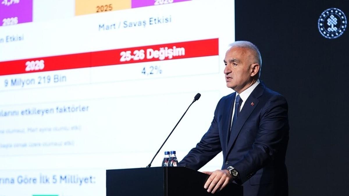 Mehmet Nuri Ersoy, 2026'nın ilk çeyreğinde elde edilen verilere göre, küresel zorluklara rağmen Türkiye turizminin yılı artıda karşıladığını vurgulayarak, "Geçen yıl ocak ayını 2 milyon 950 bin ziyaretçiyle kapatmıştık. Bu yılı 3 milyon 131 bin ziyaretçiyle kapattık. Yüzde 6,1'lik bir artış gerçekleşti. Şubat ayını geçen yıl 2 milyon 899 bin ziyaretçiyle kapatmıştık, bu yılı 2 milyon 848 bin ziyaretçiyle yani -1,7 ile kapattık." değerlendirmesini yaptı.
