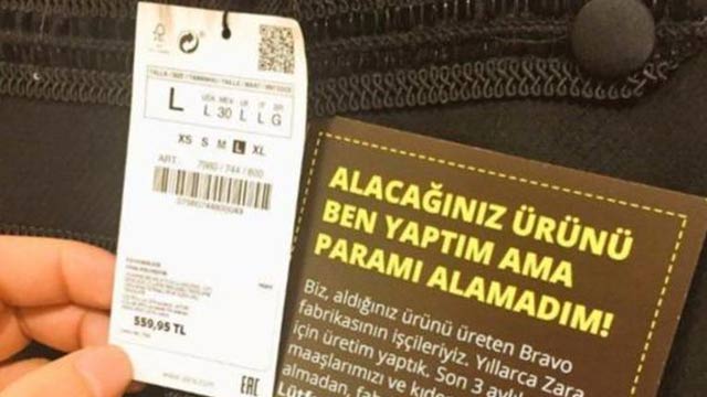 Dünya’nın en büyük markalarından Zara’ya üretim yapan Bravo hazır giyim işçileri fabrikanın bir gecede boşaltılıp sahibinin kaçması üzerine alacaklarını, kıdem ve ihbar tazminatlarını almak amacıyla, İstanbul’daki Zara mağazalarına giderek ürünlere o ürünleri ürettiklerine dair etiket yerleştirdiler. Bu etiketleri gören bazı tüketiciler sosyal medyadan paylaşarak sorunun çözülmesini istediler, bazıları da Temiz Giysi Kampanyası’nı arayarak bilgi almak istedi.