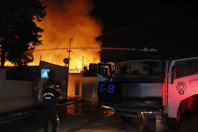 Polis yangın bölgesinde güvenlik önlemi alırken itfaiye ekipleri müdahaleye başladı.