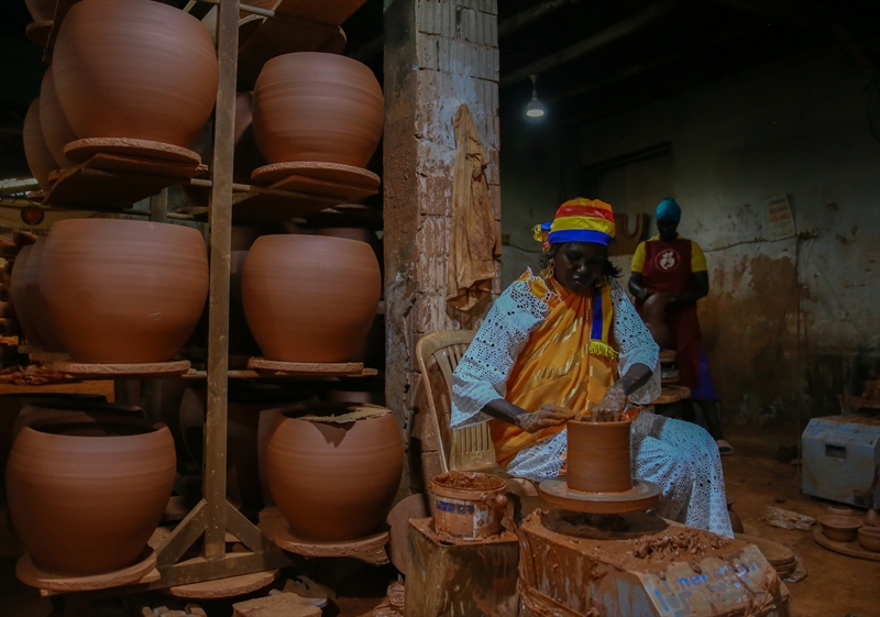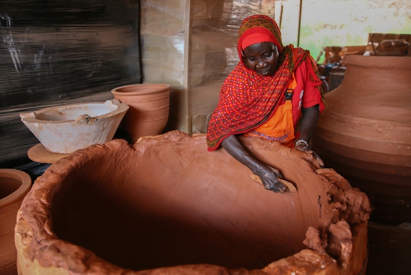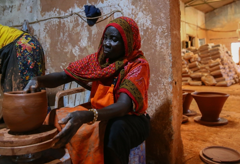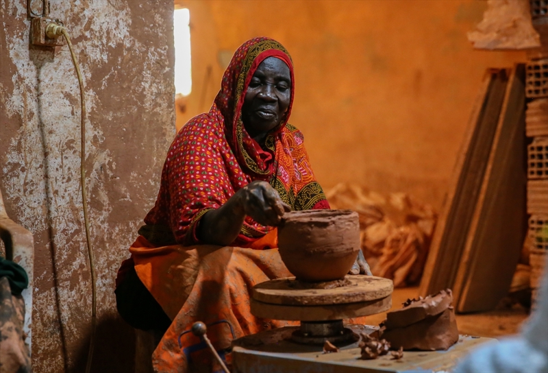 Toprağın işlenmesinden pişmesine kadar çömlek yapımında tüm evreleri elleriyle gerçekleştiren Çadlı kadınlar, burada elektrikle çalışan makinelerde çömlek yapmayı öğreniyor.