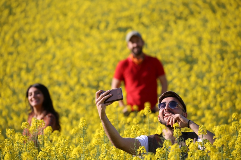 Önceki yıllarda fotoğraf tutkunlarının sıklıkla çekim yaptığı yerlerden olan kanola tarlaları da yeni tip koronavirüs (Kovid-19) salgını nedeniyle tenhalaştı.