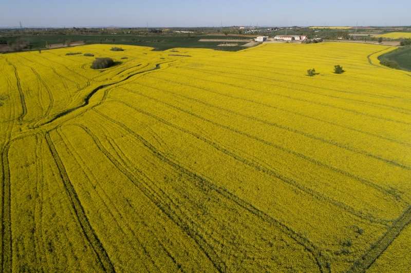 Edirne'de tarlalarda çiçek açan kanola bitkisi görsel şölen sunuyor. Ayçiçeğinden önce tarlaları sarıya boyayan kanola rengiyle göz kamaştırıyor ve kahverengi toprağı bir halı gibi örten sarısıyla güneşi çağrıştırıyor.