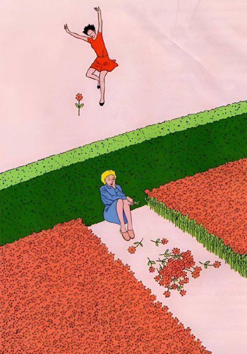 Bir kadın çiçekleri keserken, arka planda başka bir kadının çiçeklerle dans ettiğini gösteren bu görsel, basit şeylerde mutluluğu bulmanın önemini ve yaşamın farklı perspektiflerden nasıl algılanabileceğini vurguluyor. Hayatı dolu dolu yaşamanın ve küçük şeylerden zevk almanın güzelliğini anlatıyor.