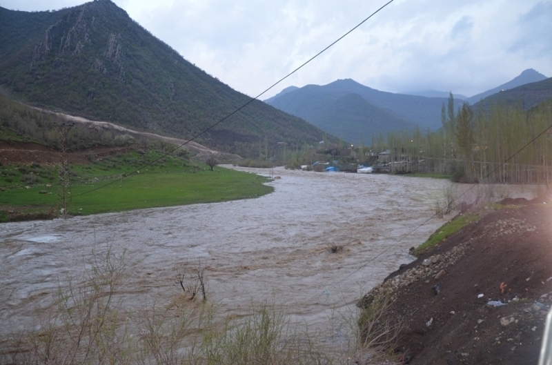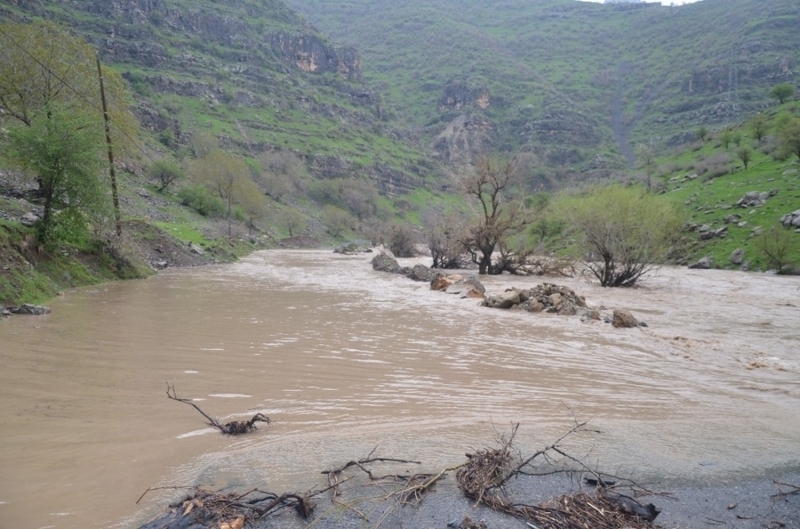 Şırnak’ın Beytüşşebap ilçesinde iki gündür etkili olan sağanak yağış sonucu ilçede bulunan Habur çayının coşmasına neden oldu