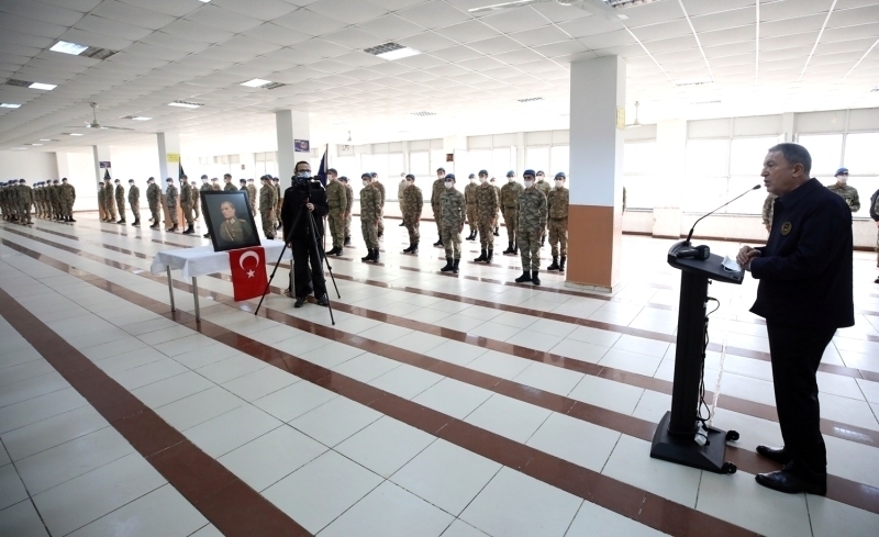 Görevin büyüğünün veya küçüğünün olmadığını belirten Akar, "Bizim için önemli olan verilen görevin başarıyla yapılmasıdır. Şu anda Türk Silahlı Kuvvetleri İdlib'de, Zeytin Dalı'nda, Fırat Kalkanı, Pençe harekat bölgelerinde faaliyetlerine yoğun bir şekilde devam ediyor. En son terörist etkisiz hale getirilinceye, halkımızın, hudutlarımızın güvenliği sağlanana, ülkemize yönelik risk ve tehditler ortadan kalkana kadar faaliyetlerimize devam edeceğiz. Bugüne kadar elimizden geleni yaptık bundan sonra da yapmaya devam edeceğiz" ifadelerini kullandı.