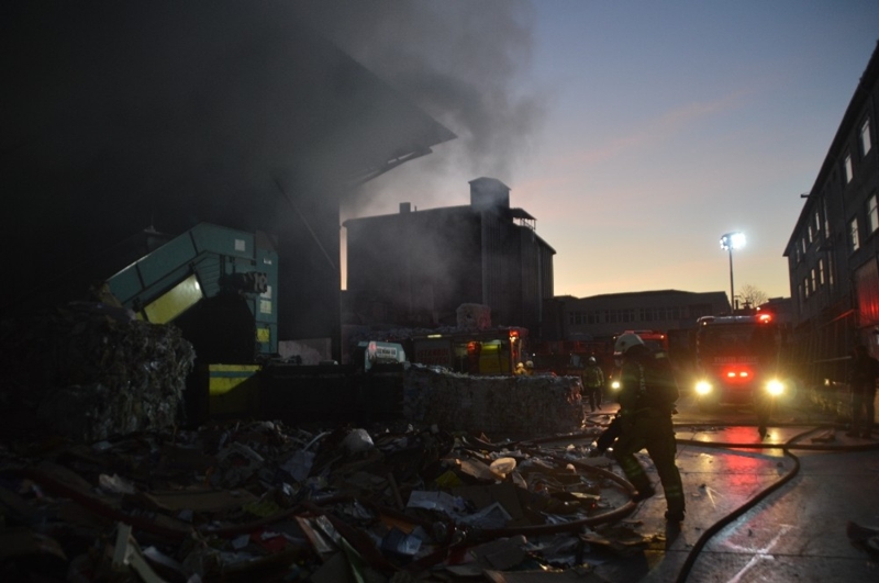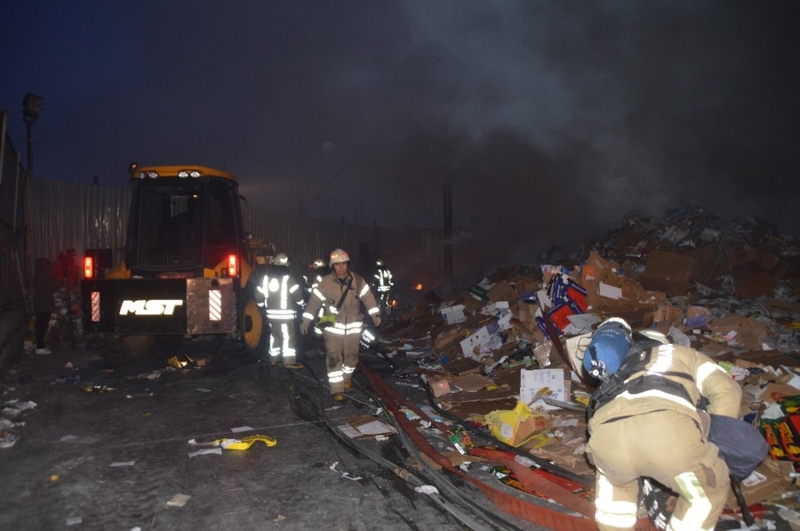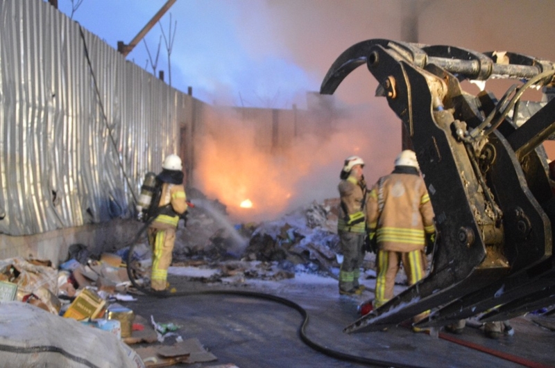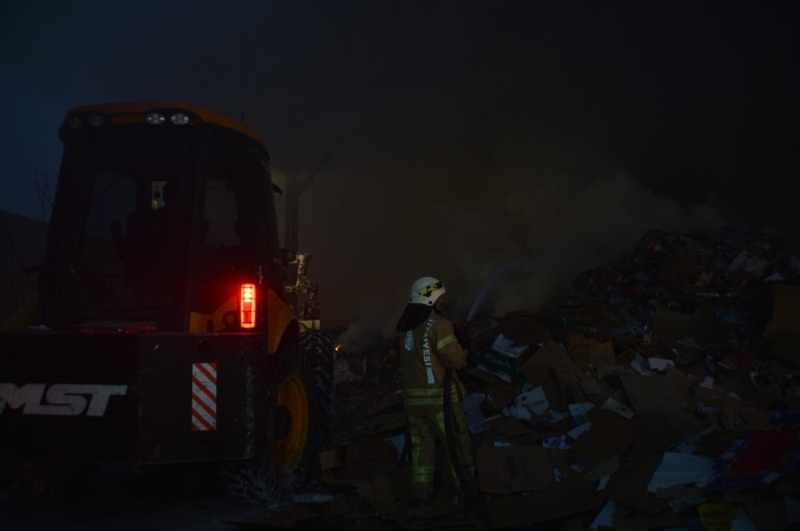 Bayrampaşa'da bulunan kağıt geri dönüşüm deposunda çıkan yangın paniğe sebep oldu. İtfaiye ekipleri ve iş makinesinin çalışmaları ile kontrol altına alınan yangın büyümeden söndürüldü