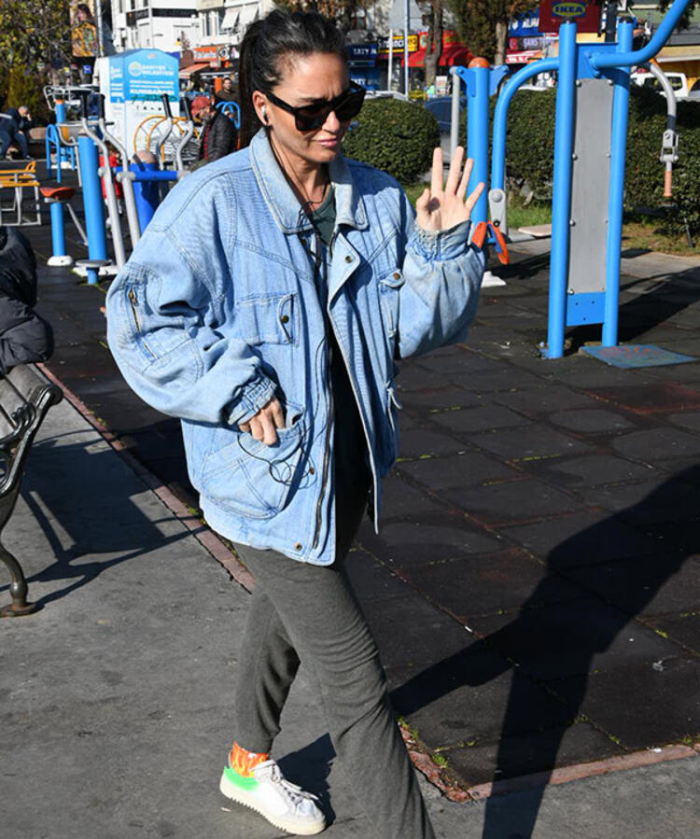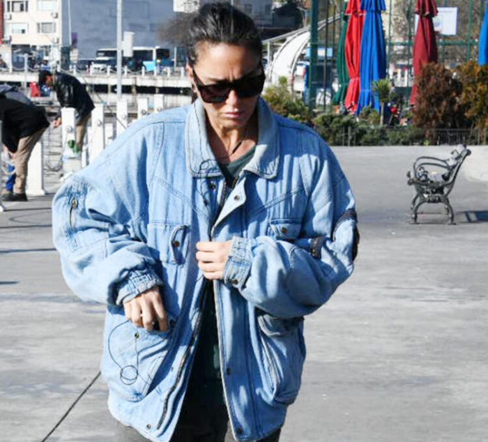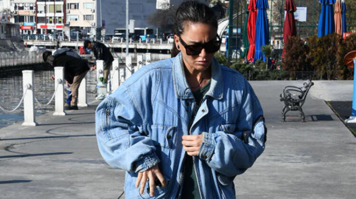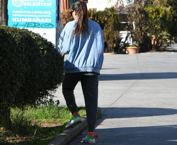 Yalnız başına yürüyüş yapan Eda Taşpınar, görüntülendiğini fark edince yolunu değiştirdi.
