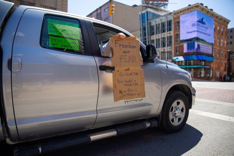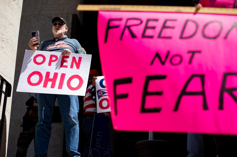ABD'nin Ohio Valisi Mike DeWine'ın eyalet sakinlerine yeni tip koronavirüs (Kovid-19) salgınıyla mücadele kapsamında getirdiği ''evde kal'' çağrısına rağmen, protesto gösterileri düzenlendi.
