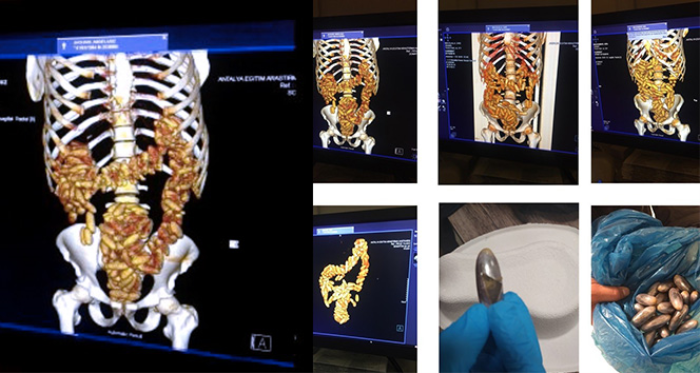 Görevliler tarafından yapılan sorgulamada, yutarak uyuşturucu madde naklettikleri yönünde kuvvetli şüphe oluşturan şahıslar, hastaneye sevk edildi. Hastanede çekilen tomografi görüntülerinde şahısların uyuşturucu madde yuttukları tespit edildi.