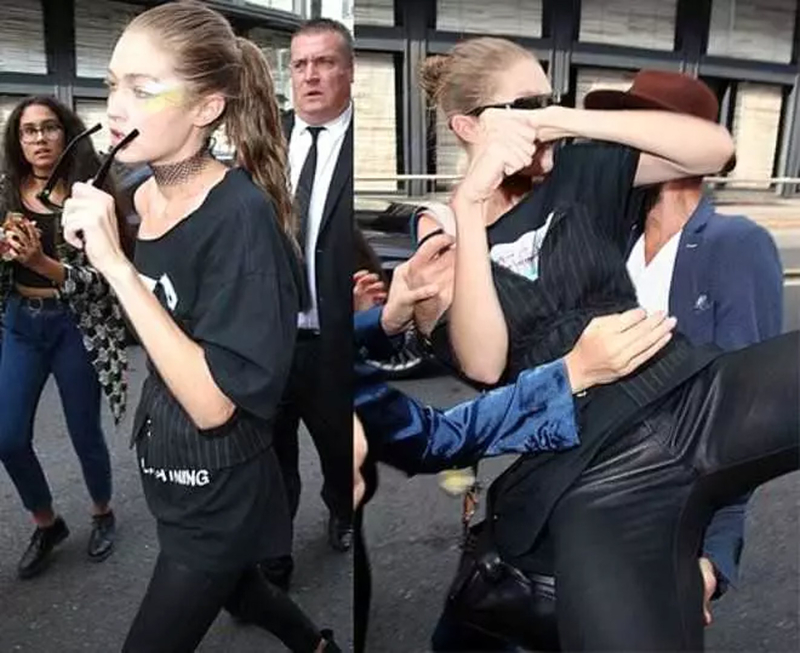 Dünyaca ünlü model Hadid, bir defile çıkışı hayranı tarafından kucaklanınca, kendisini kucaklayan kişiye yumruk atarak kurtulmaya çalışmıştı.