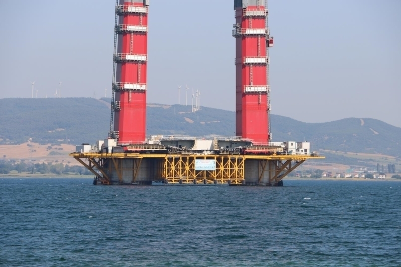 Dev tabliyelerin montajında Singapur bayraklı "Asian Hercules-III" isimli yüzer vinç kullanılıyor.