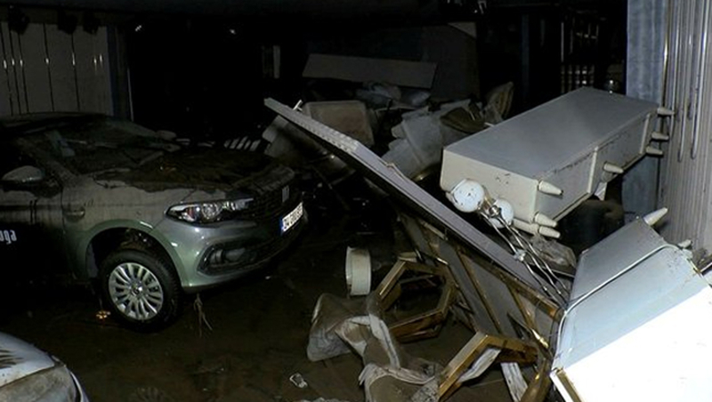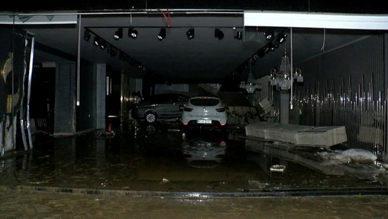 Site içinde park halinde bulunan çok sayıda otomobil sel sularına kapılarak sürüklendi. Bazı otomobillerin mobilya mağazalarının içine girdiği görüldü.