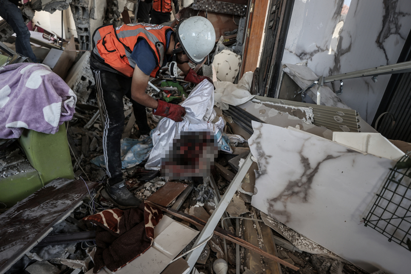 Refah kentinde bulunan Dhair ailesine ait evi yerle bir etti. Sivil savunma ekipleri ve bölge sakinleri, arama kurtarma çalışması başlattı.