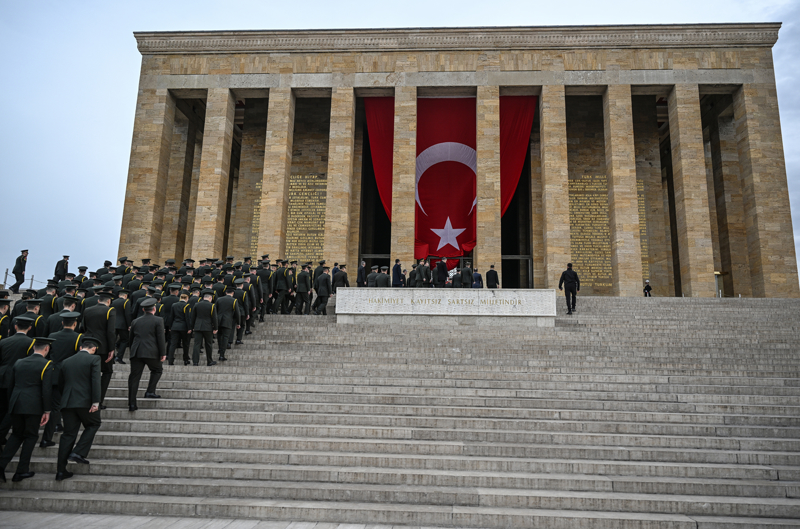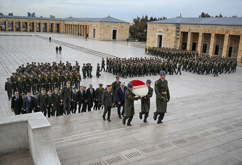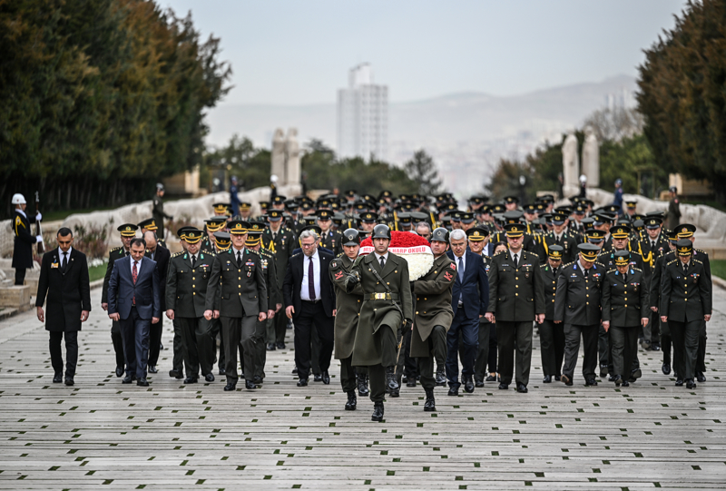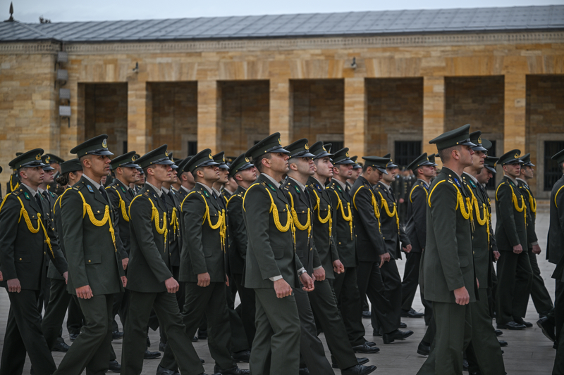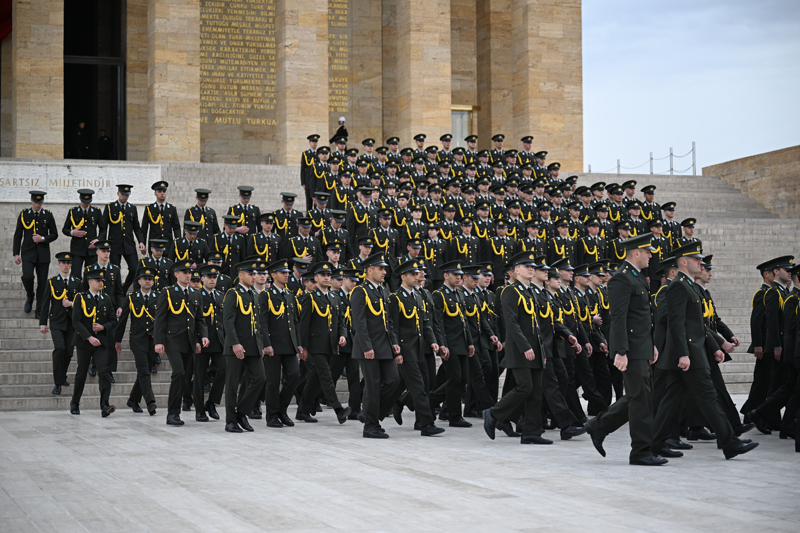 Milli Savunma Üniversitesi (MSÜ) Kara Harp Okulu öğrencileri, Büyük Önder Gazi Mustafa Kemal Atatürk'ün Kara Harp Okulu'na girişinin 125'inci yıl dönümü dolayısıyla Anıtkabir'i ziyaret etti.