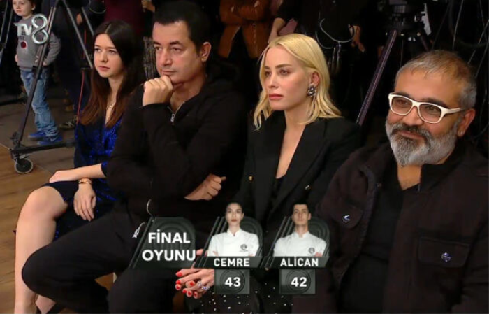 TV8 ekranlarının büyük bir ilgiyle izlenen yarışmacı MasterChef Türkiye, dün akşam final bölümüyle ekrana geldi. MasterChef finalinde Cemre ve Alican, Türk, dünya ve imza yemeklerinden oluşan menülerle yarıştı. Acun Ilıcalı'nın da seyircilerin arasından izlediği yarışta şampiyon olan da belli oldu.