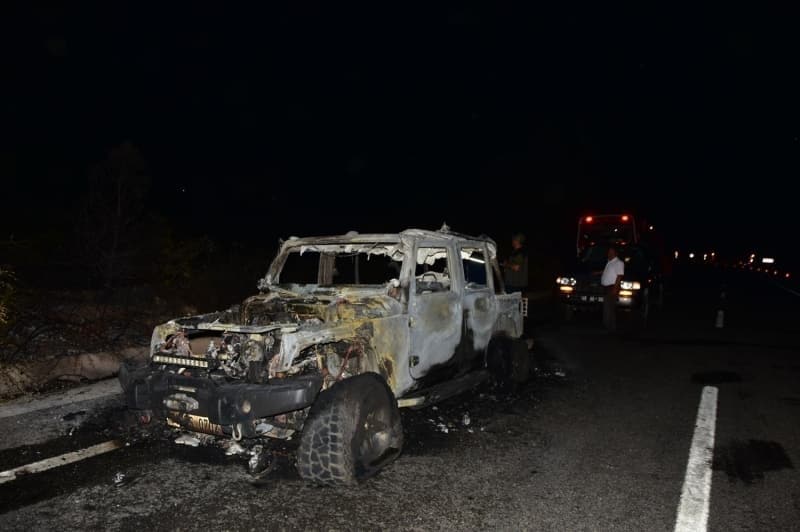 Kimlikleri henüz belirlenemeyen iki kişinin otomobili terk etmesinden kısa süre sonra araç, tamamen yanmaya başladı.