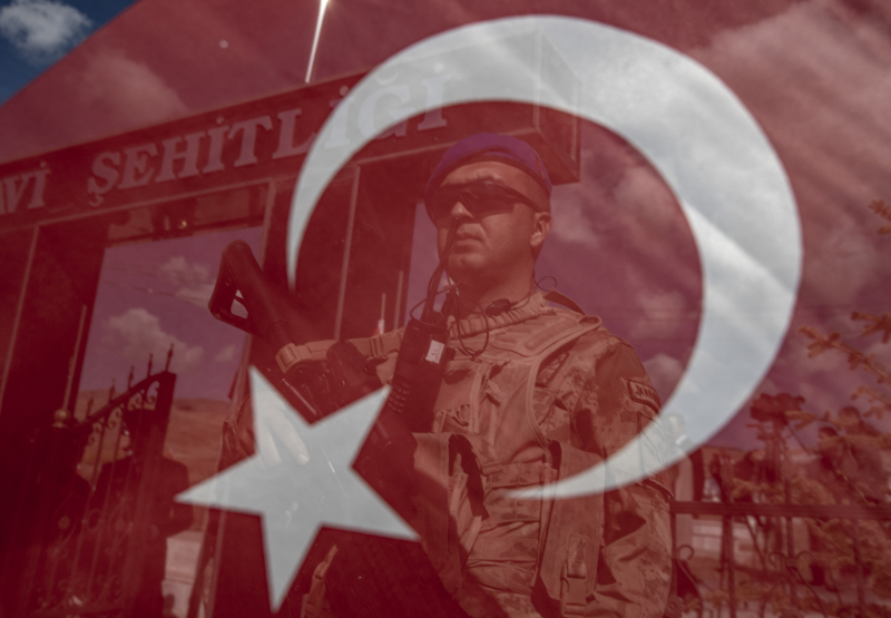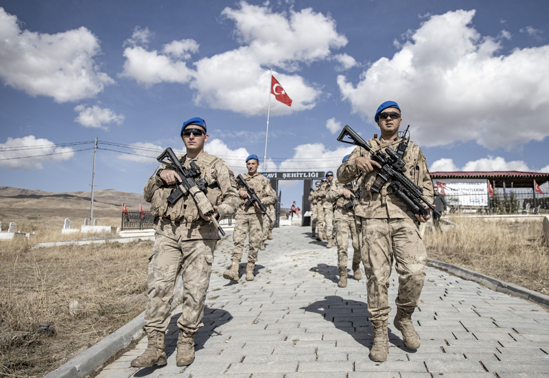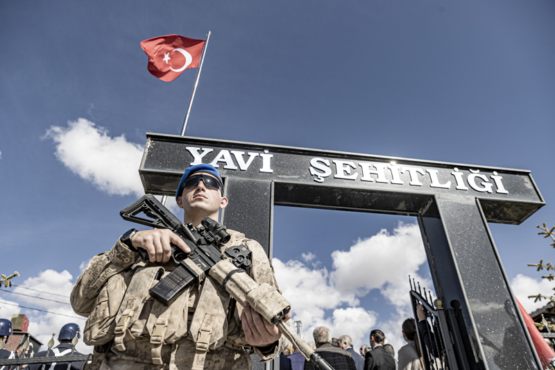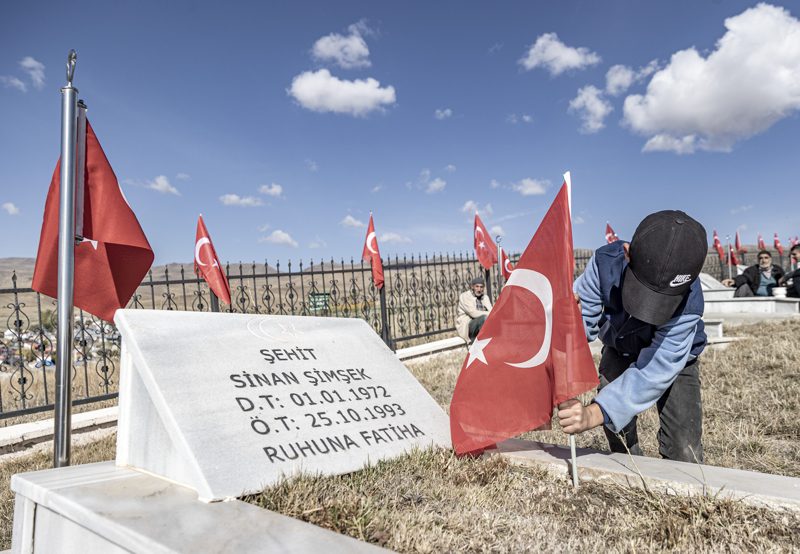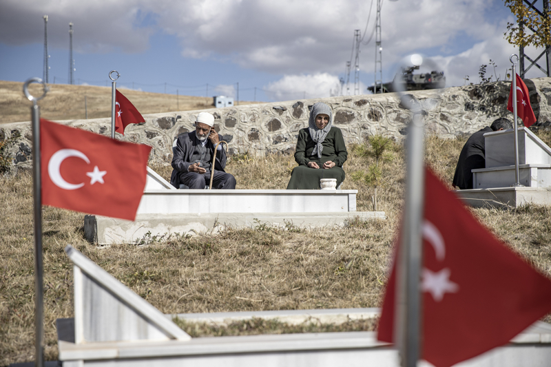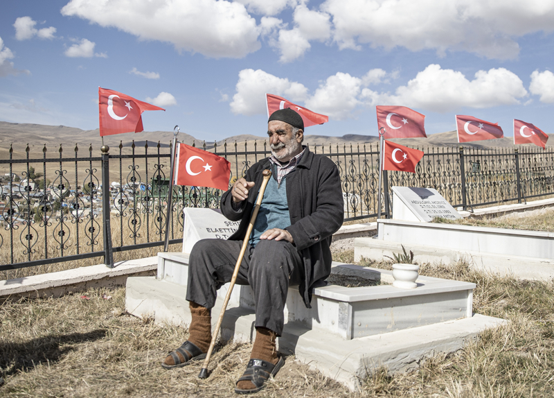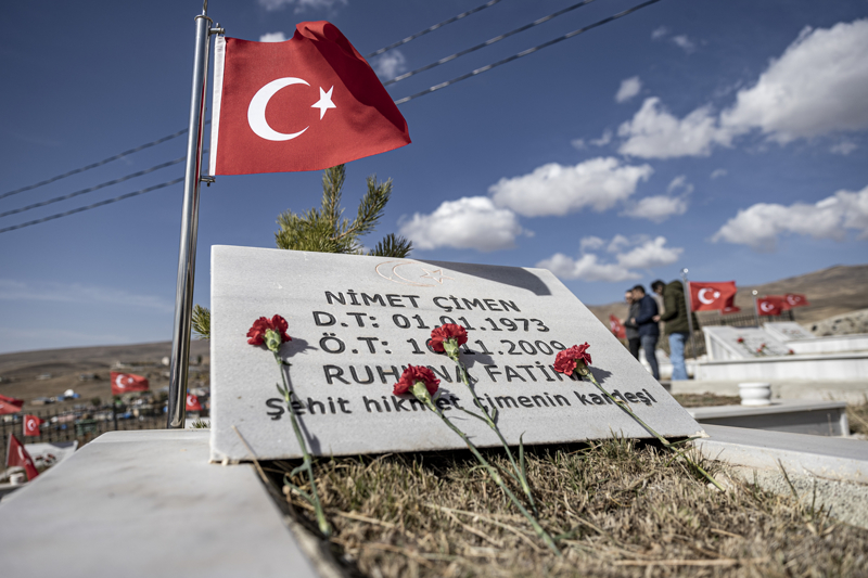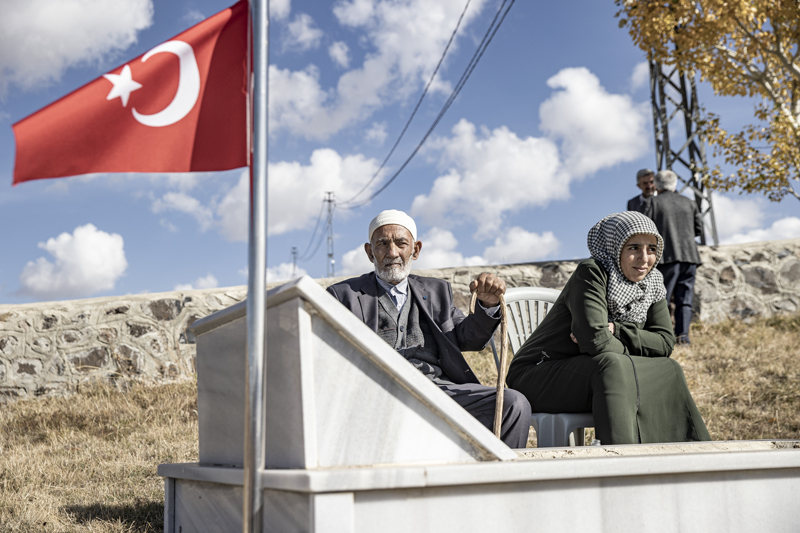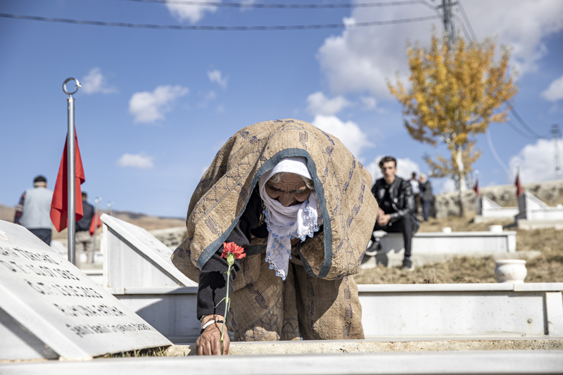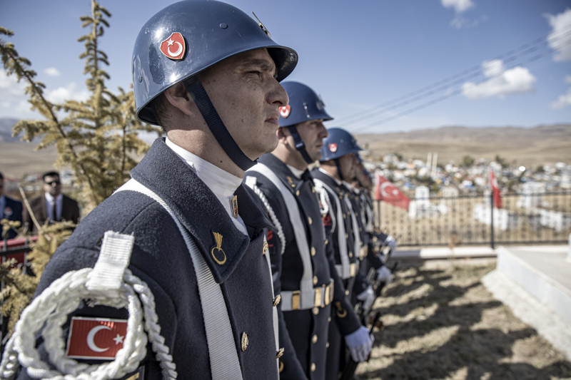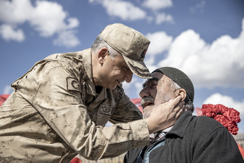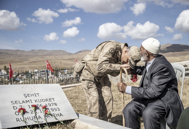 İl Jandarma Komutanı Tuğgeneral Metin Düz, mezar başında ağlayan 74 yaşındaki şehit yakını Zeki Gürcüoğlu'na sarılıp teselli etti.