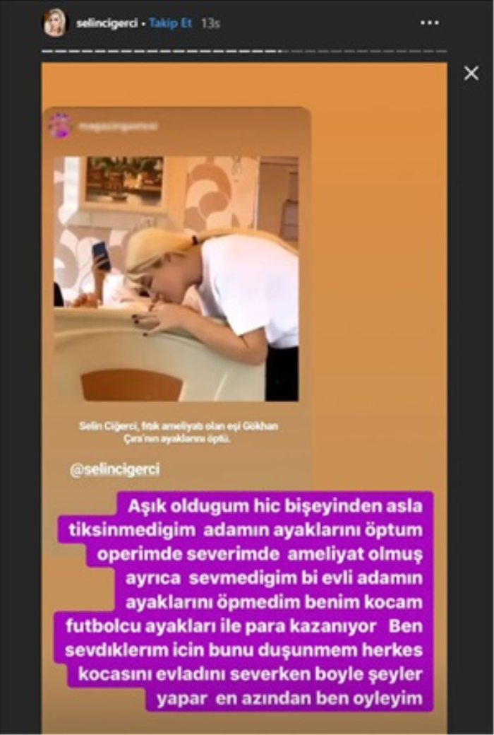Selin Ciğerci videoda "Bunların hepsi Türk lokumu, hepsi tatlı bunların" diyerek eşinin ayak parmaklarının hepsini öptü. Görüntülerin kısa sürede yayılmasının ardından fenomen ve eşi bir anda gündem oldu.