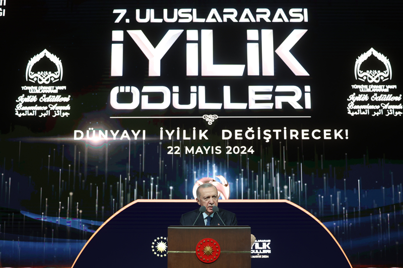 Cumhurbaşkanı Recep Tayyip Erdoğan, Beştepe Millet Kongre ve Kültür Merkezi'nde düzenlenen Uluslararası İyilik Ödülleri Töreni'ne katılarak konuşma yaptı.