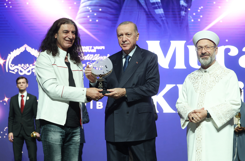 Cumhurbaşkanı Erdoğan, Yurt İçi Vefa Ödülüne layık görülen, TDV'nin yardım kampanyalarında, kurban bağışlarında, ihtiyaç sahiplerinin eksiklerinin tamamlanmasında yer alan sanatçı Murat Kekilli'ye ödülünü verdi. Törende, Diyanet İşleri Başkanı Ali Erbaş da yer aldı.