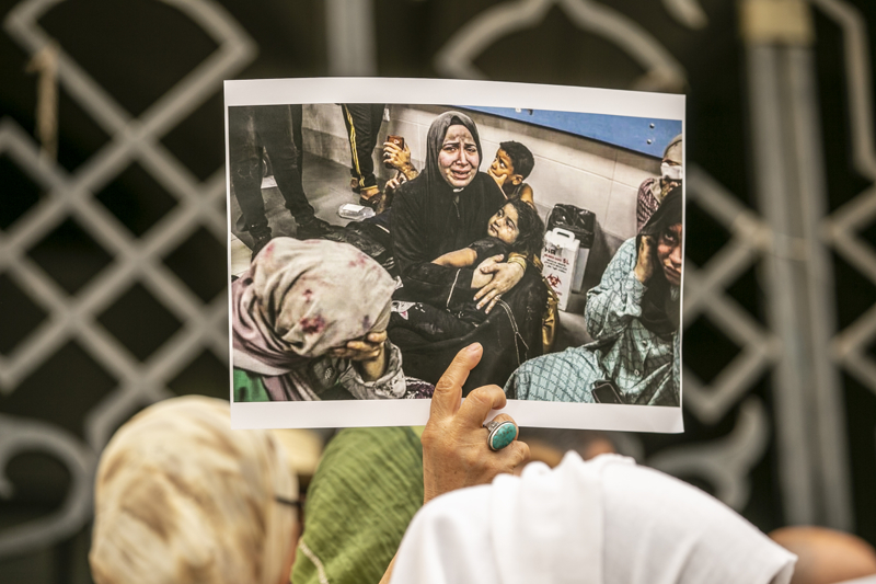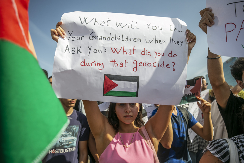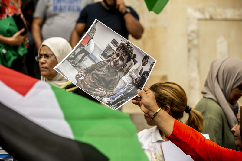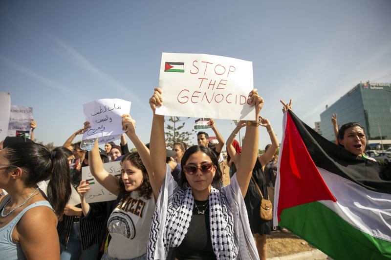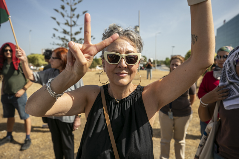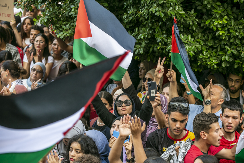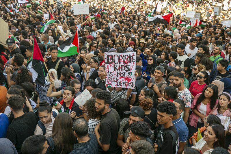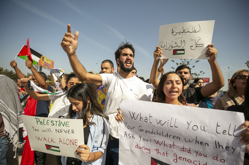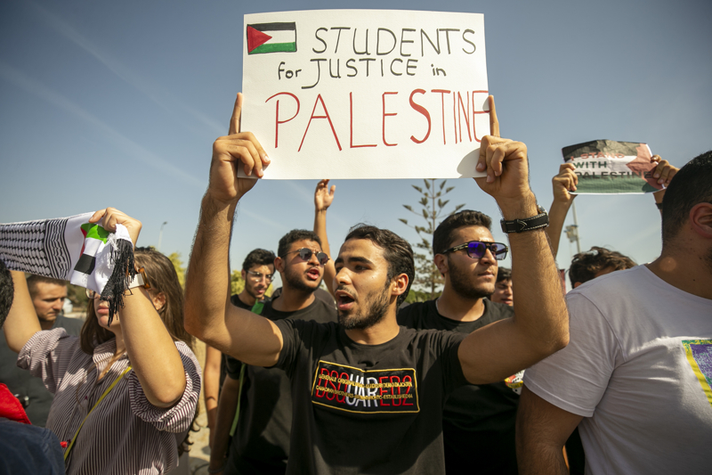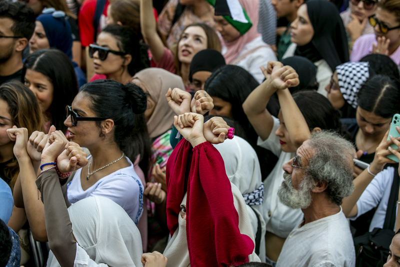 Tunuslu Hakimler Birliğinin çağrısı üzerine başkent Tunus'taki Adalet Sarayı önünde toplanan hakimler, Filistin bayrakları ve Filistin'e destek sloganlarının yazıldığı dövizler taşıdı.