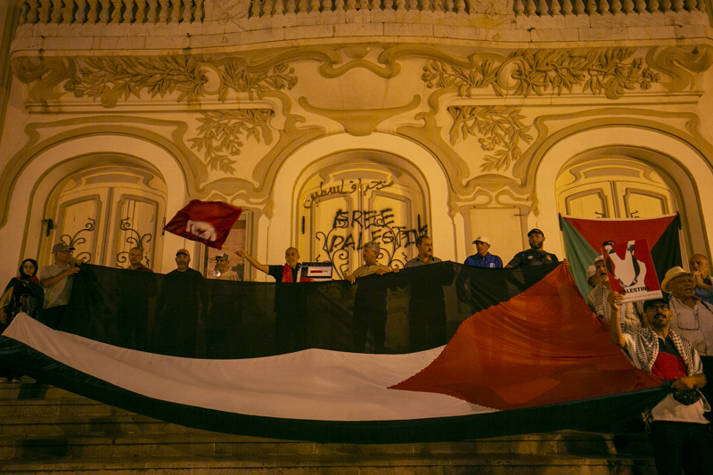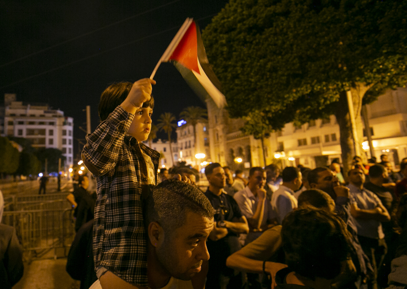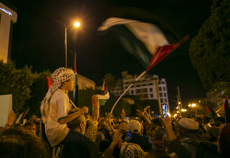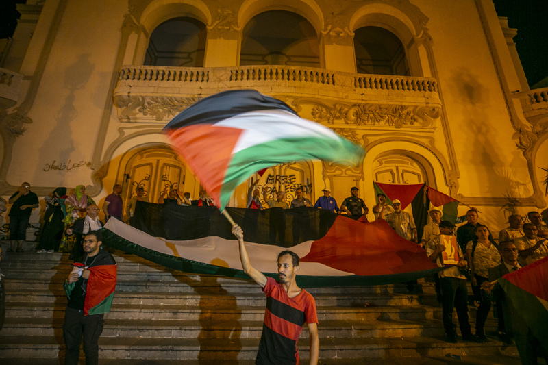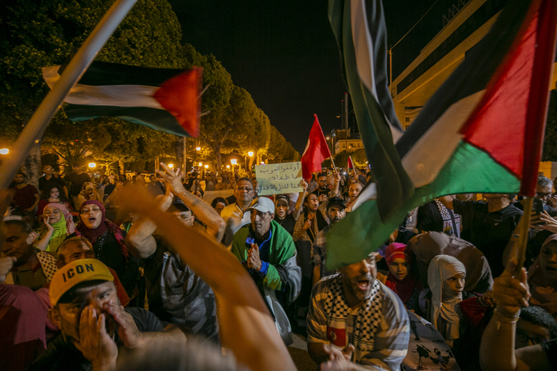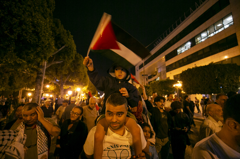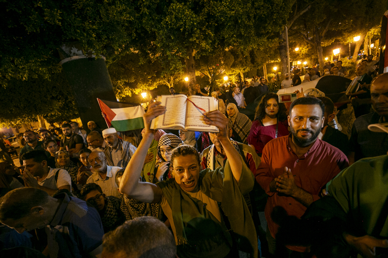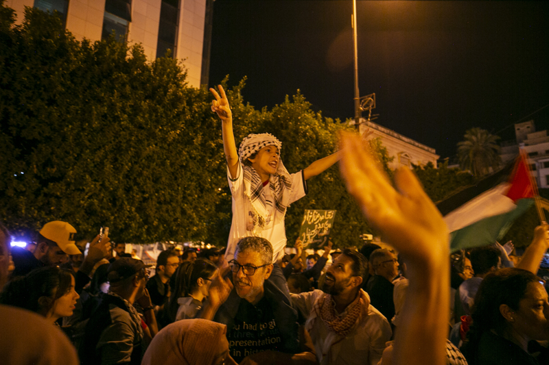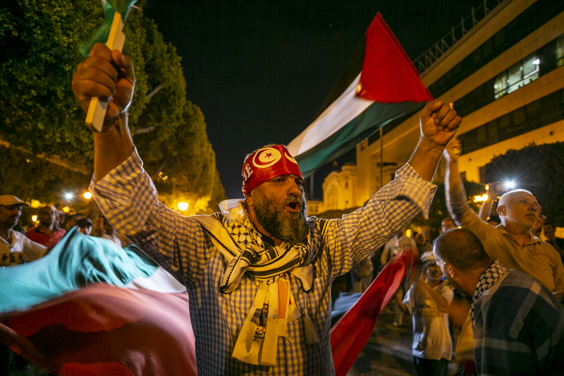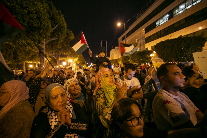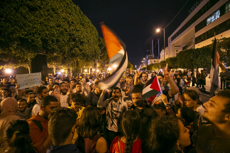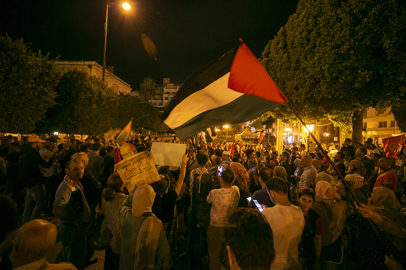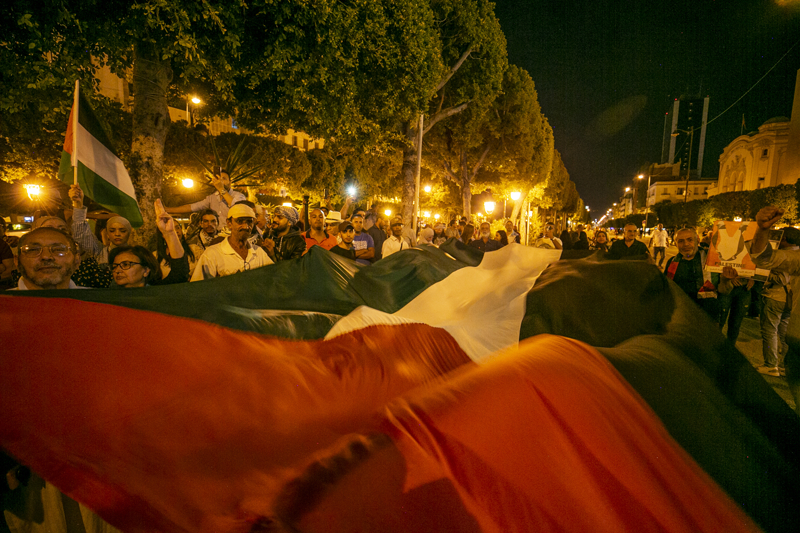 Başkent Tunus'un merkezinde yer alan Habib Burgiba Caddesi'nde bir arya gelen göstericiler, Filistin ve Tunus bayrağı taşıdı.