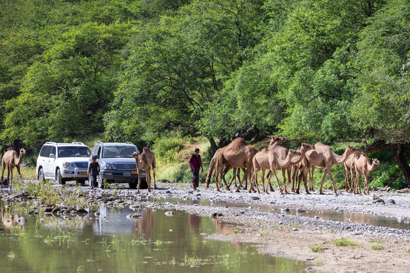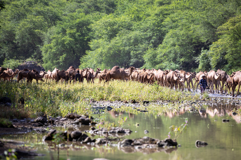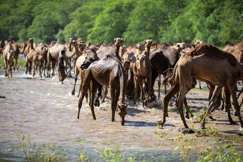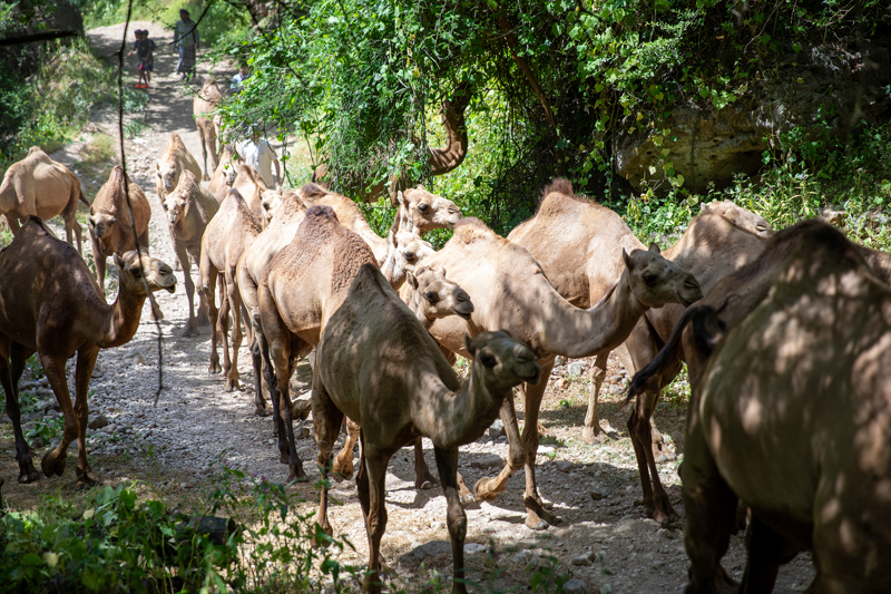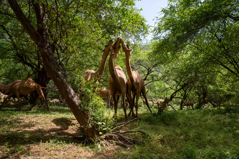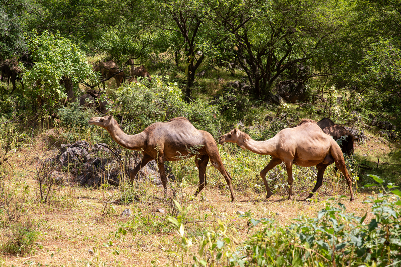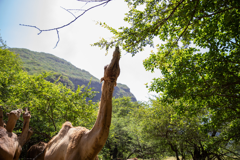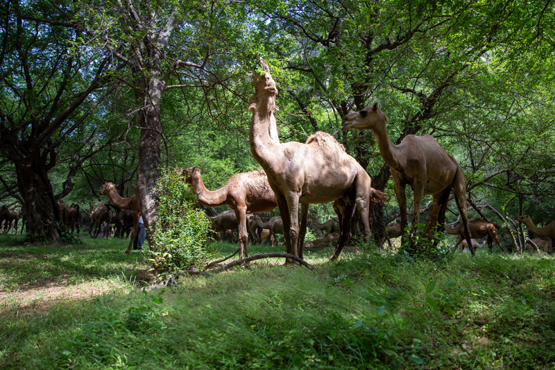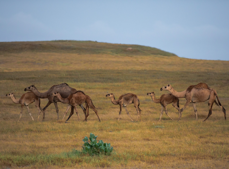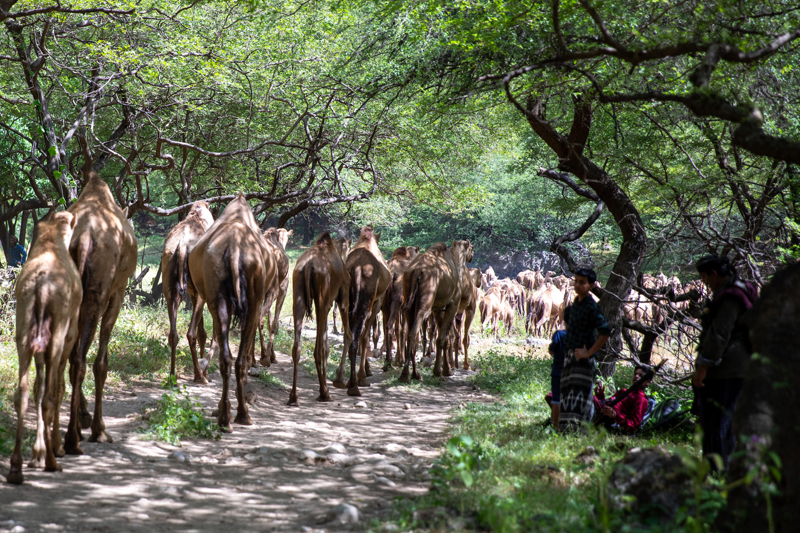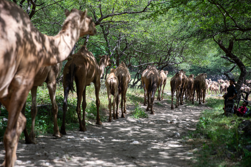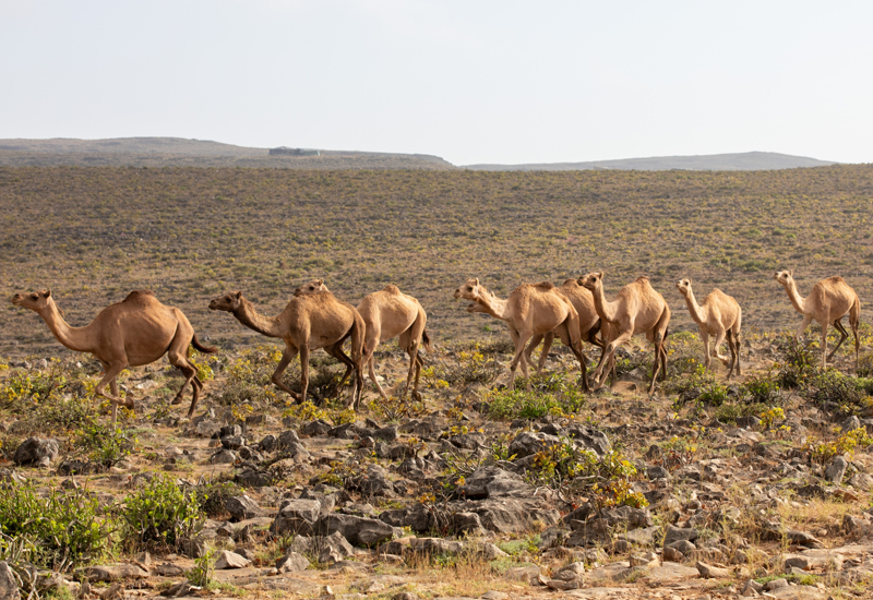 Umman'ın Zufar ilinde etkisini gösteren yağışların ardından besiciler, yetiştirdikleri develeri kentin otlak alanlarına götürmek için zorlu bir yolculuğa çıktı.