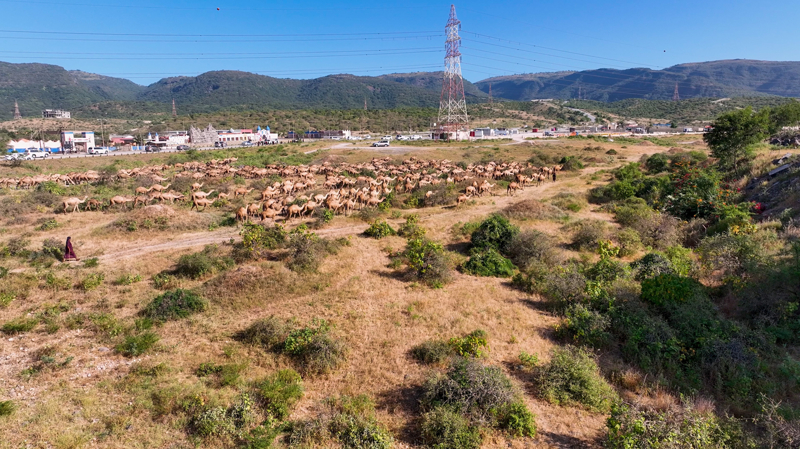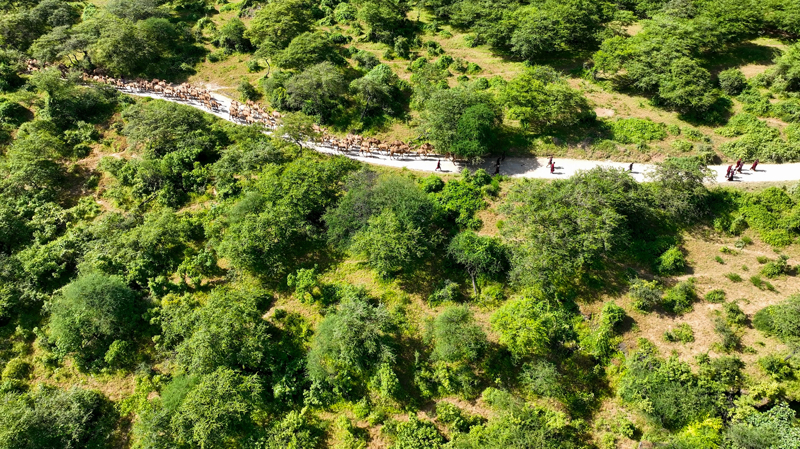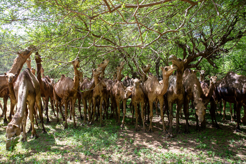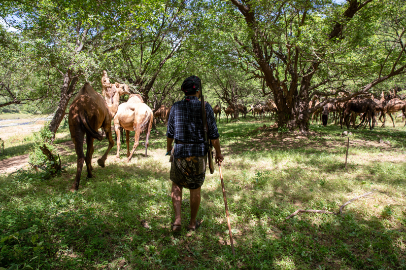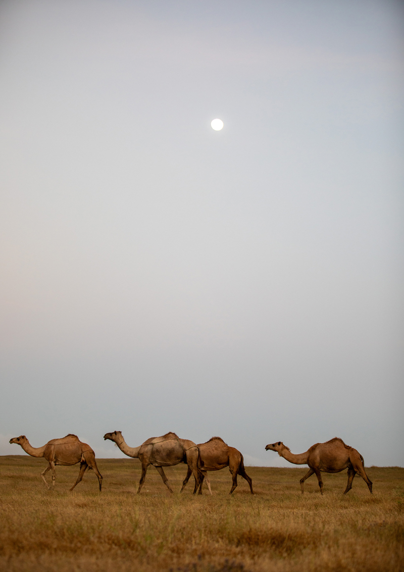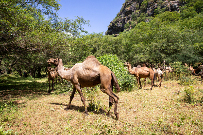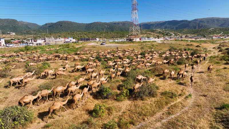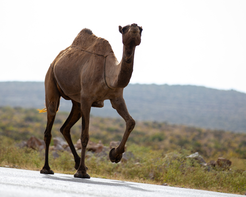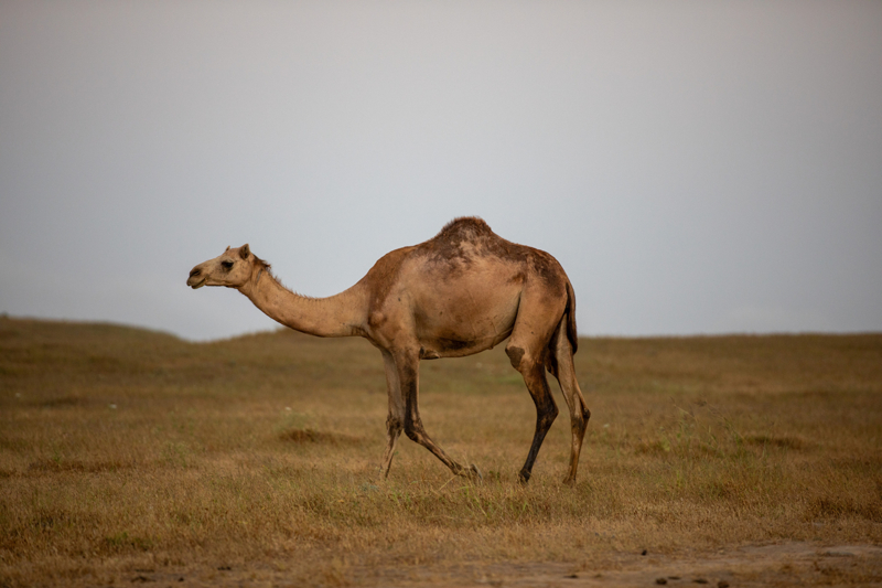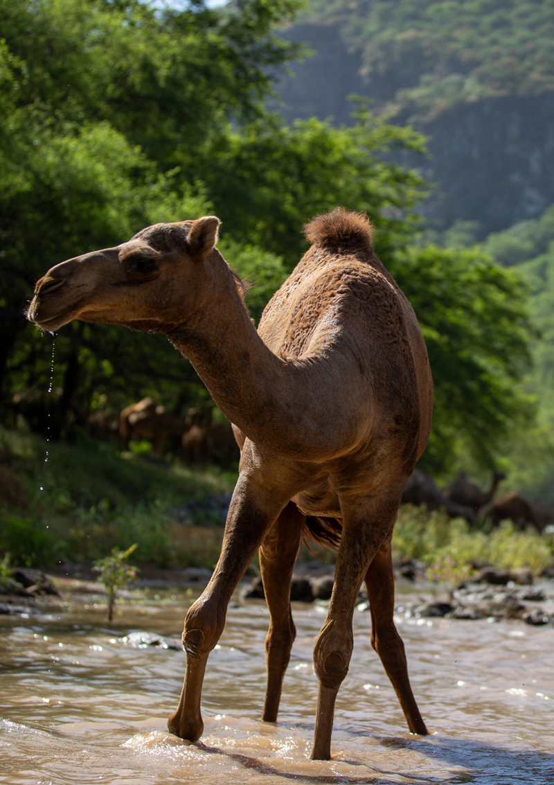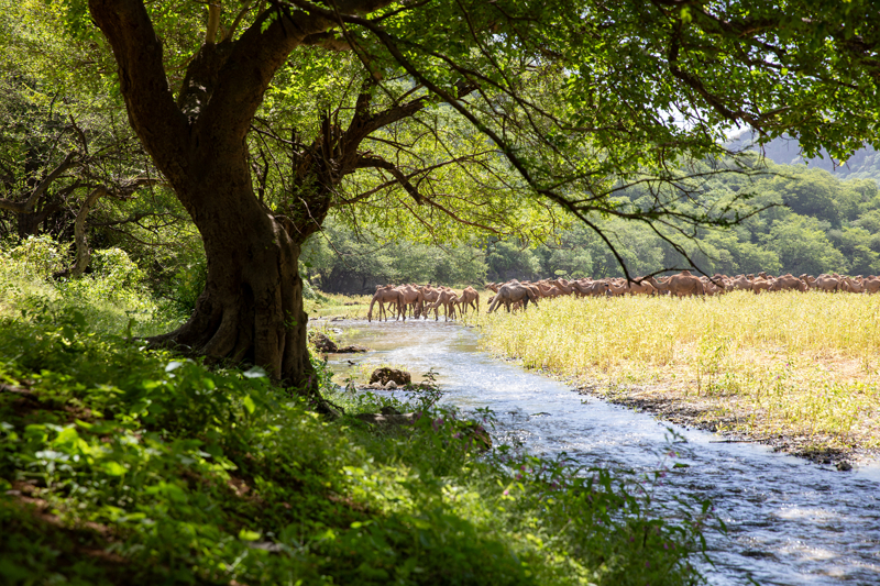 Umman'ın Zufar ilinde etkisini gösteren yağışların ardından besiciler, yetiştirdikleri develeri kentin otlak alanlarına götürmek için zorlu bir yolculuğa çıktı.