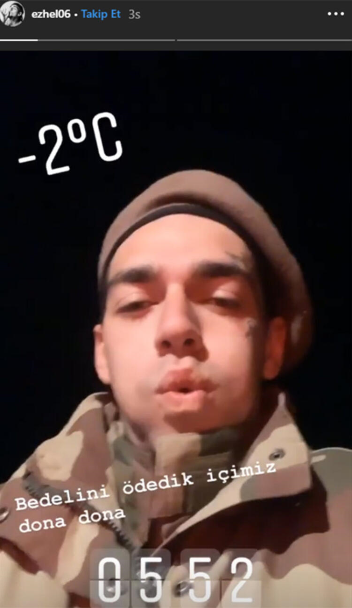 Vatani görevini yapmak için sabahın ilk saatlerinde uyanan Ezhel, eksi 2 derecede ağzından duman çıkarttığı anları sosyal medya hesabından takipçileriyle paylaştı.