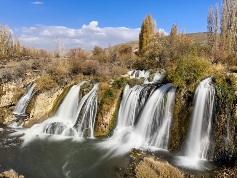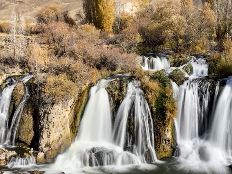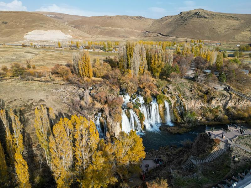 Van'da bulunan Muradiye Şelalesi, sonbahar renklerinin bir arada görülebildiği doğasıyla ziyaretçilerini bekliyor.