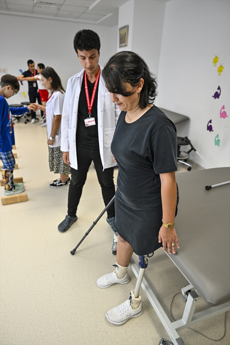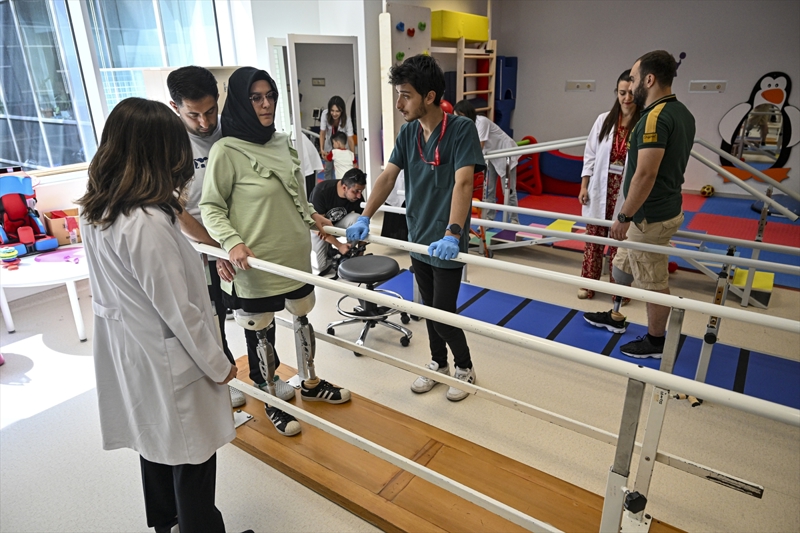 Kahramanmaraş merkezli depremlerde 6 gün enkaz altında kalan, 4,5 aylık bebeği ve eşini kaybeden, sol bacağı ampute edilen 31 yaşındaki edebiyat öğretmeni Makbule Kartay, Bilkent Şehir Hastanesi'nde yapılan proteziyle 7 ay sonra yeniden ayağa kalktı.