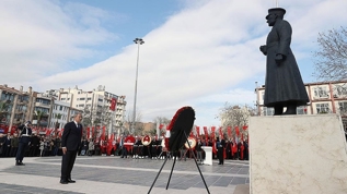 18 Mart Şehitleri Anma Günü ve Çanakkale Deniz Zaferi'nin 108. yıl dönümü dolayısıyla düzenlenen törenlerin ilki Cumhuriyet Meydanı'nda gerçekleştirildi.