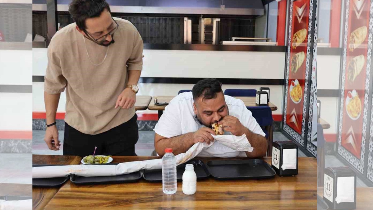 Hatay'da sosyal medya üzerinden başlatılan 1,5 metrelik döner yeme yarışmasını kazanan Sergen Cingöz, 5 bin TL para ödülünün sahibi oldu.