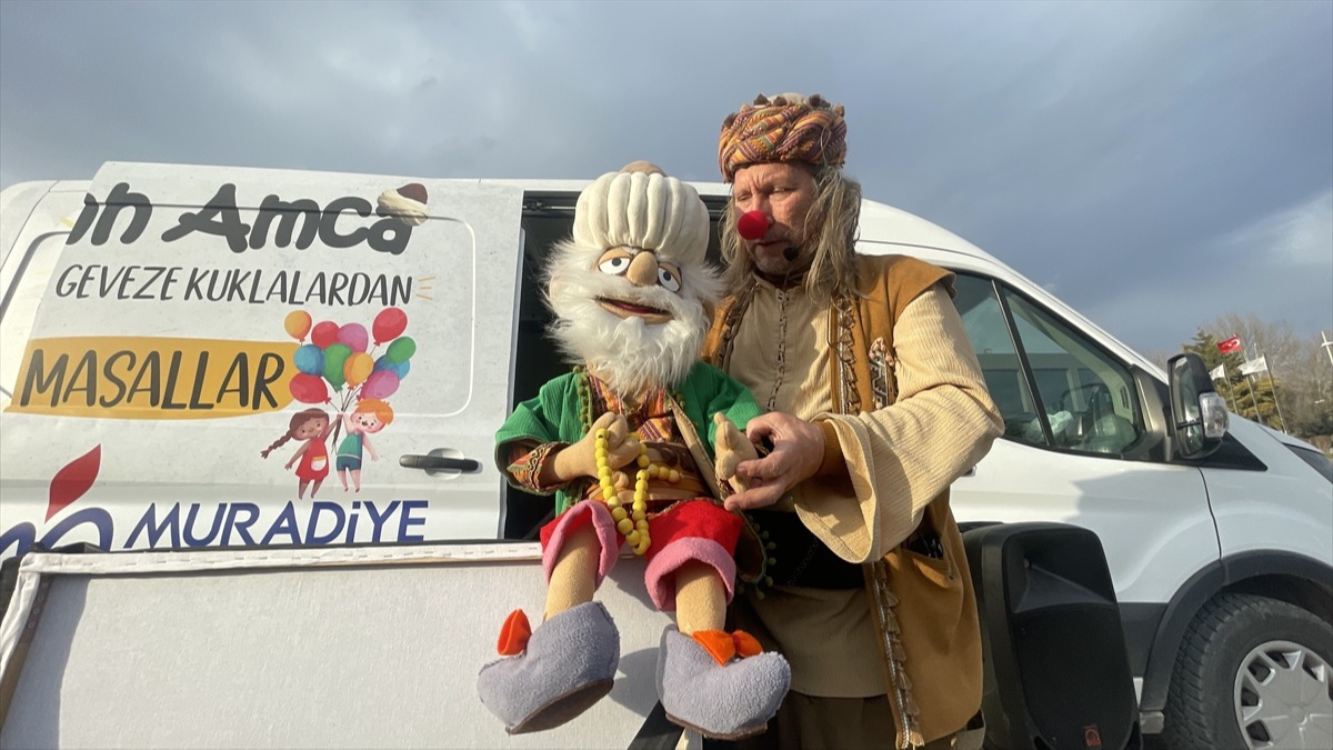 Tiyatro sanatçısı ve meddah Mehmet Tahir İkiler, Karagöz Hacivat, Nasreddin Hoca ve çeşitli kuklalarla depremlerde etkilenen çocukları eğlendirmek amacıyla "Meddah Amca Geveze Kuklalardan Çocuklara Masallar" yazısı giydirilmiş minibüsüyle Ankara'dan yola çıktı. Afet bölgesindeki il, ilçe ve köyler arasında binlerce kilometre yol alan İkiler, bir araya topladığı minik depremzedelere, rengarenk kuklaları ve yılların verdiği sahne tecrübesiyle eğlenceli anlar yaşatıyor.