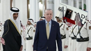 Daha sonra Katar Emiri Al Sani, Lusail Sarayı'na gelişinde Erdoğan'ı karşıladı.