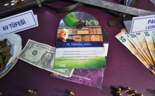Ele geçirilen malzemeler arasında, FETÖ elebaşı Gülen'in sohbet CD'si ve 'F' serili 1 dolar da yer aldı. Gözaltına alınan şüphelilerin emniyette işlemleri sürüyor.