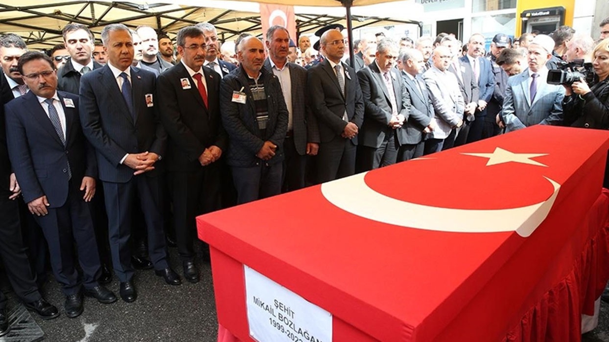 İçişleri Bakanlığı Emniyet Genel Müdürlüğü giriş kapısı önüne hafif ticari araçla gelerek bombalı saldırıda bulunan teröristlerce katledilen ve aracı gasbedilen şehit veteriner teknikeri Mikail Bozlağan'ın (24) cenazesi, Kayseri'de toprağa verildi.
