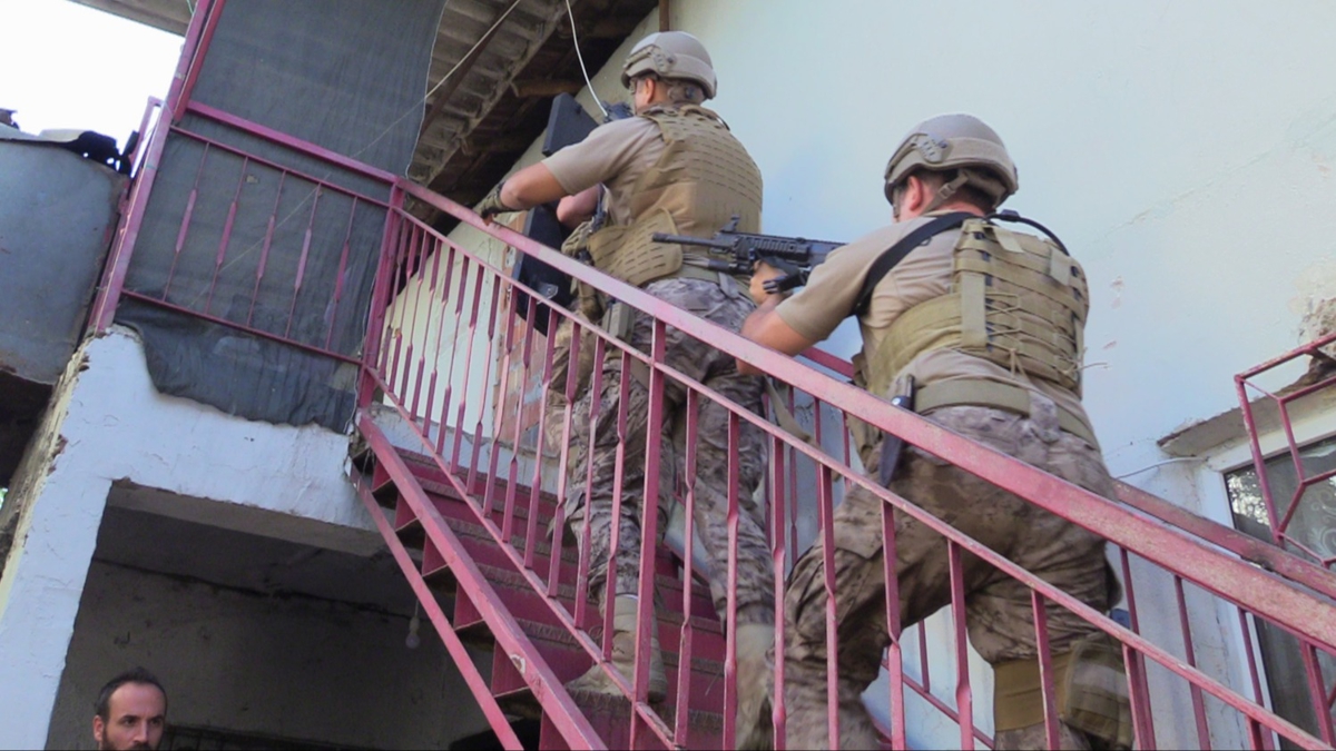 Köpek Eğitim Merkezi (KEM) ekiplerinin getirdiği hassas burun köpekleri "Geeta", "Çaki", "Maya", "Pascal" ve "Pars" hem evlerde hem de bahçelerde arama yaptı.