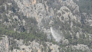 Bölgede görev yapan helikopterler, denizden aldıkları suyu yanan alanlara taşıyarak söndürme çalışmalarına destek veriyor.