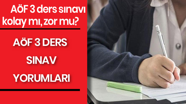 AÖF 3 ders sınavı kolay mı, zor mu? sorusu arama motorlarında yoğun olarak aratıyor. Sınava ilk defa girecek olan AÖF öğrencileri 3 ders sınavı yorumlarını merak ediyor. AÖF 3 ders sınav süresinin bitmesi ile AÖF 3 ders sınavı ile ilgili sosyal medya üzerinden yapılan yorumlar şöyle;