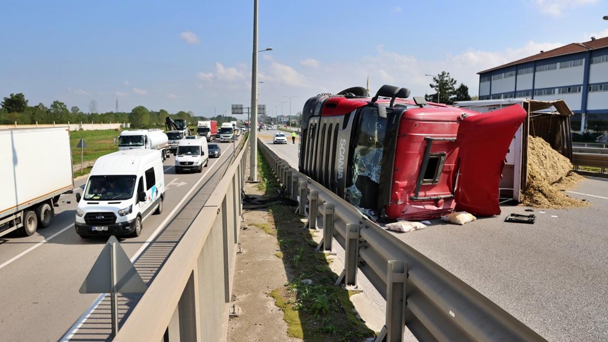 Samsun'un Tekkeköy ilçesinde arının sokması sonucu aracın kontrolünü kaybederek kaza yapan tırın şoförü yaralandı.