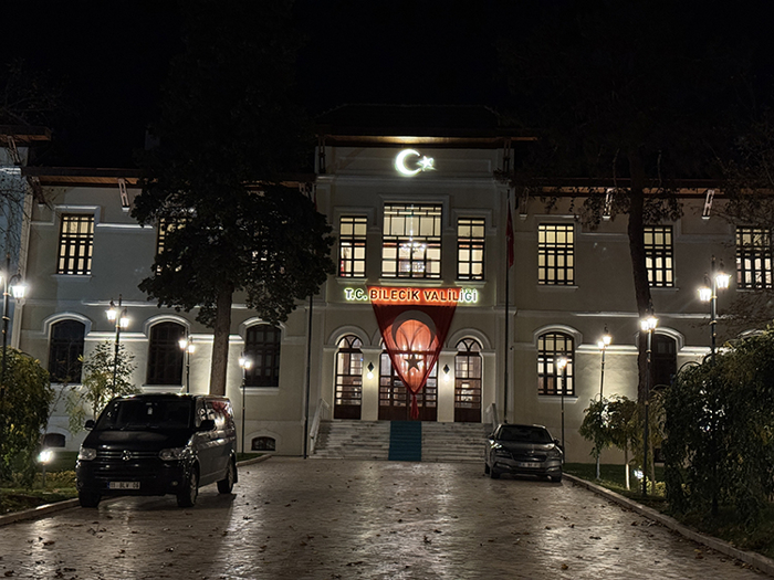Valilik binası ve baba evine Türk bayrakları asıldı.
