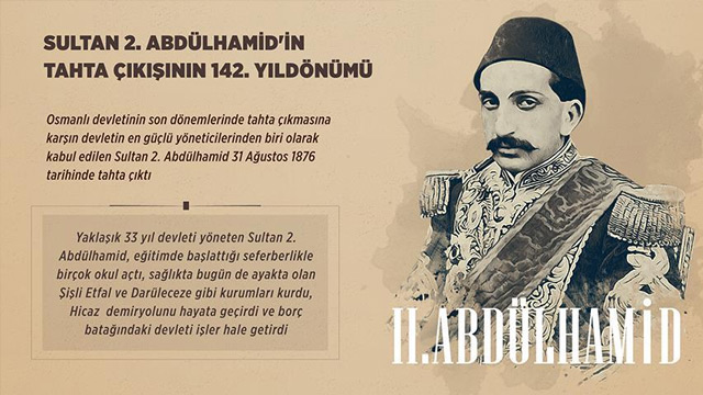 31 Ağustos 1876'da tahta çıkan Sultan 2. Abdülhamid, eğitim, sağlık, iktisat ve askeri alanlarda yaptığı çalışmalarla Osmanlı Türkiye'sine önemli katkı sunmasıyla biliniyor.
